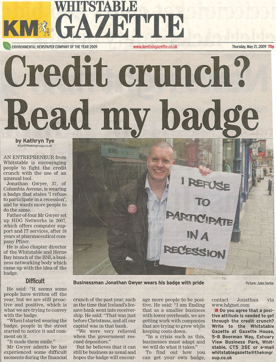 Jonathan takes a stand on the recession and spreads the BNI word in this week’s Whitstable Gazette.