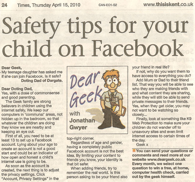 The Geek family are strong believers in children using the internet safely. We keep our computers in ‘communal’ areas, not hidden up in the bedroom, so that whatever the children are doing they know we are close by and keeping an eye out.