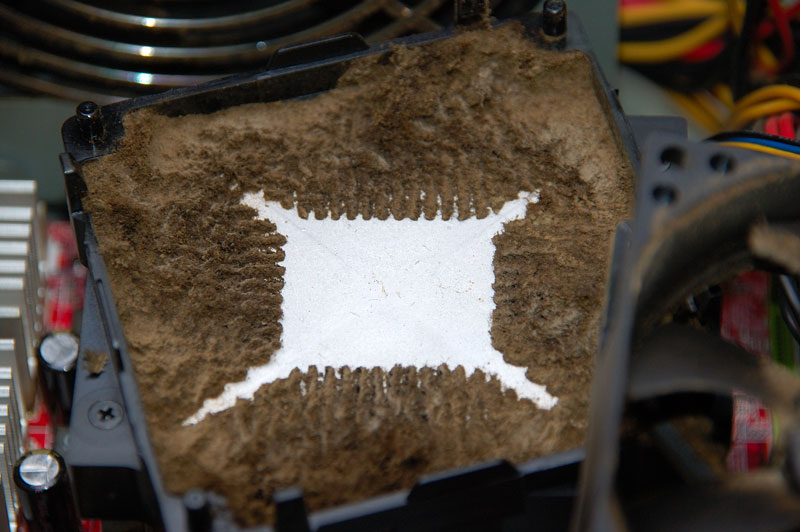A quick peek under the lid revealed the cause – fluff overload in the CPU area.