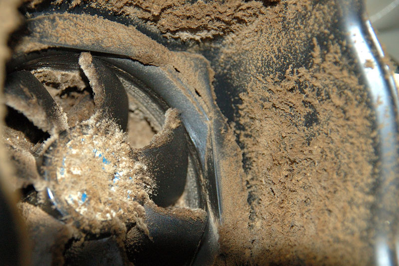 After removing the fan from the heat sink I had to scrape the brown coating off the fan blades and out of the heat sink grooves.