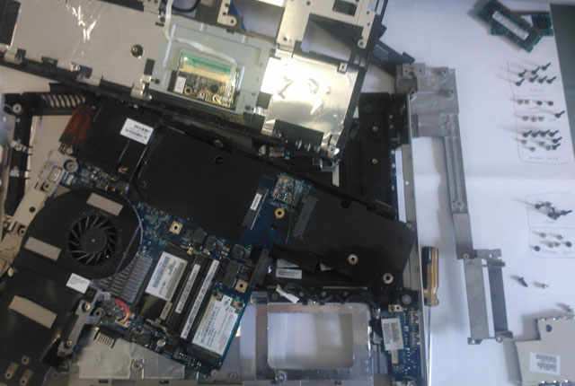 The other, an HP, was an absolute nightmare to work on. Apart from removing the keyboard, screen, DVD drive, great chunks of the case had to be dismantled and the whole motherboard removed. All so it could be flipped over to reach the necessary components.