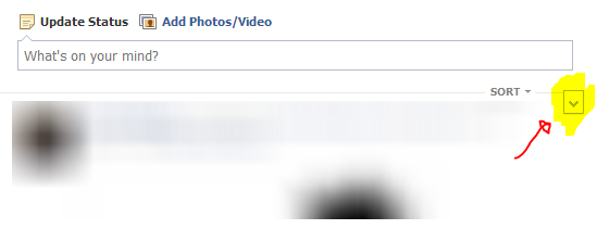Next time you see a post from them in your timeline, move your pointer up to the top of the post, and move over to the right. A little drop down arrow box will appear. Click it: