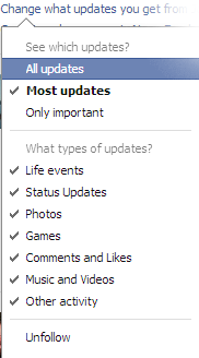 Now you can remove certain types of updates or select Only important which uses our old friend Edgerank (see Facebook Pages are NOT disappearing completely from your feed! among others) to pick the best stories to show us.
