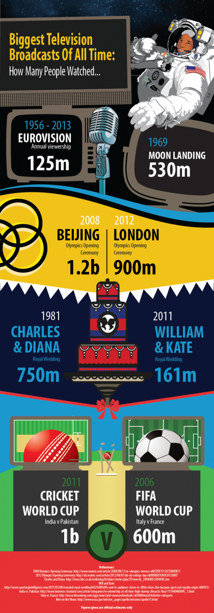 I’m too young to have watched the moon landing, but I was one of those 750m watching Charles & Diana get married. I confess I was a complete Olympics cynic until I watched the opening ceremony on television, along with 900m others, and was bowled over by the spectacle.